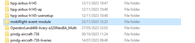 - Delete the 'mobiflight-event-module' folder