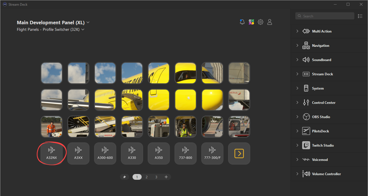 - Launch the Stream Deck App and load the Flight Panels Profile Switcher